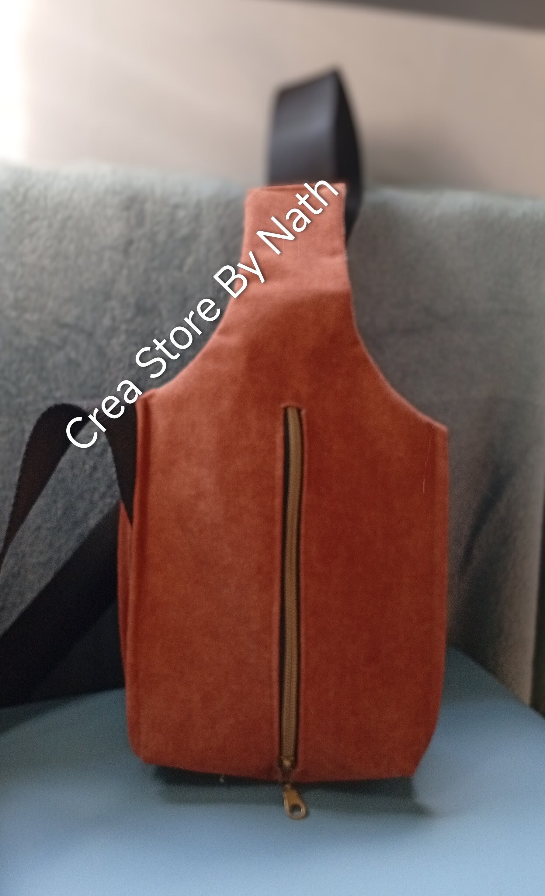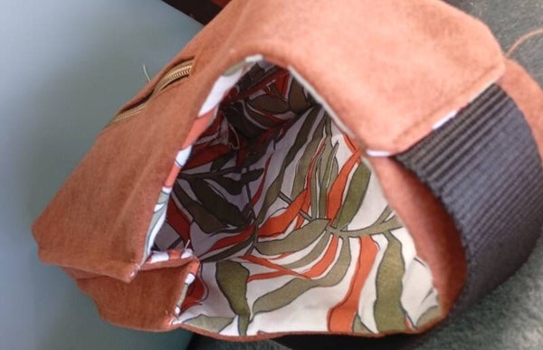 Sacoche à bandoulière velours marron uni.